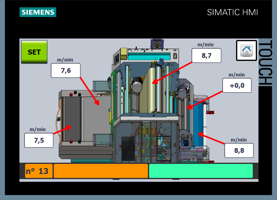 Questa funzione permette di impostare le velocità di lavoro dei tappeti e del feltro, aumentando l’apertura della pelle grazie alla differenza di velocità tra entrata ed uscita