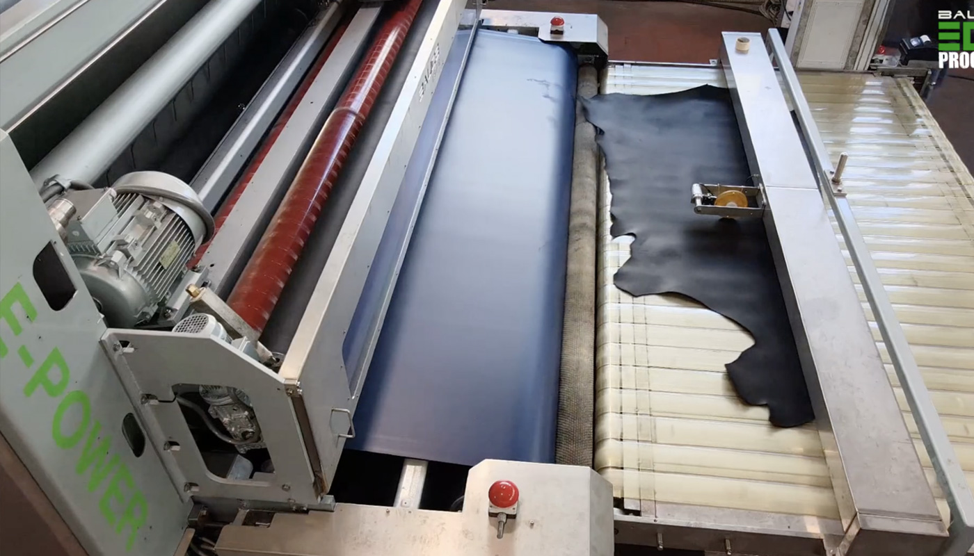 MVC 4S VERSUS DR E-POWER is provided with 2 independent blade cylinders installed after sammmying by felts unit, operating on the leather by increasing the area and removing felts's mark and an increasing of opening of the leather of 2-3%.