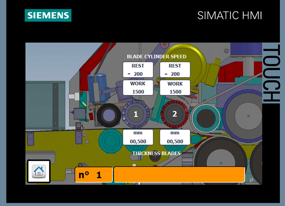 Questa funzione regola lo spessore delle pelli e la velocità di rotazione dei cilicndri a lame da 500-1500 rpm