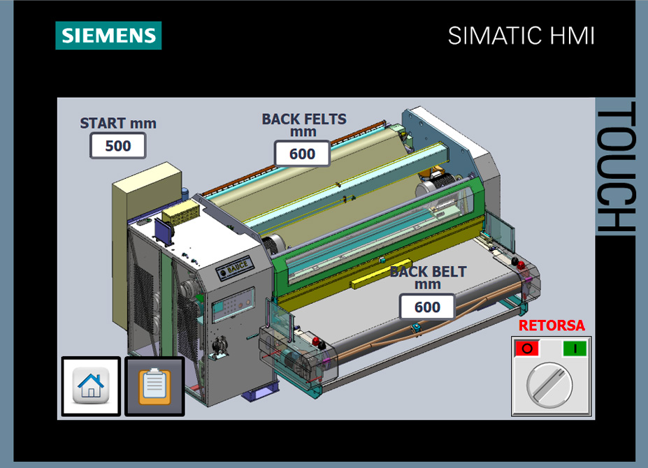 Questa funzione permette di impostare le velocità di lavoro dei tappeti e del feltro, aumentando l’apertura della pelle grazie alla differenza di velocità tra entrata ed uscita